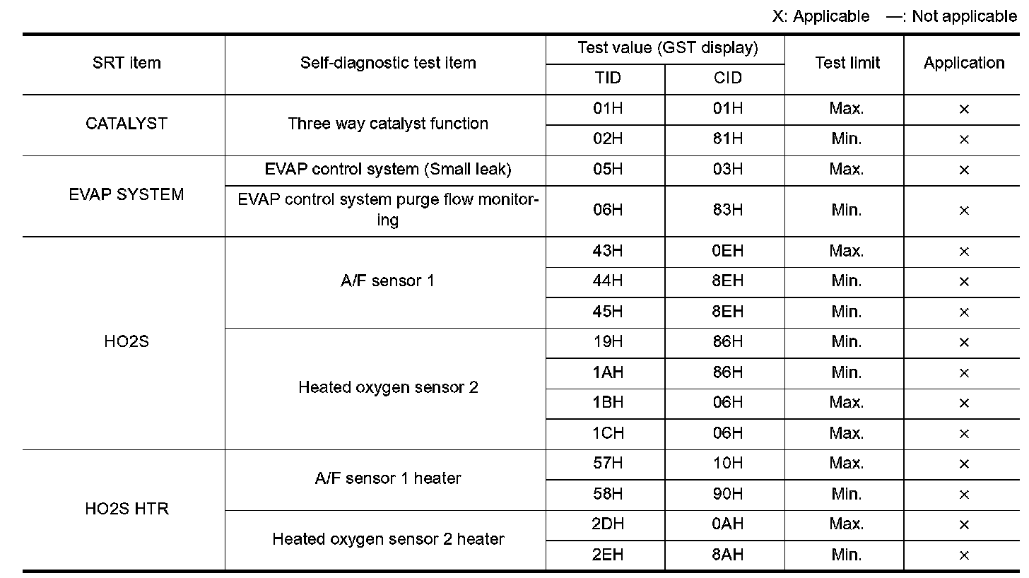 The test value is a parameter used to determine whether a system/circuit diagnostic test is "OK" or "NG" while being monitored by the ECM during self-diagnosis. The test limit is a reference value which is specified as the maximum or minimum value and is compared with the test value being monitored.