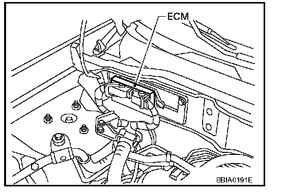1. ECM is located in the right side of the cowl top (behind the strut tower).