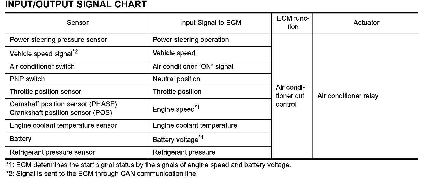 Air Conditioning Cut ControlInput/Output Signal Chart: