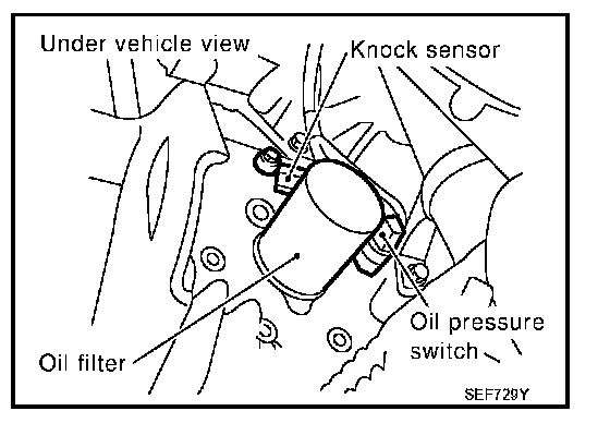 The knock sensor is attached to the cylinder block. It senses engine knocking using a piezoelectric element. A knocking vibration from the cylinder block is sensed as vibrational pressure. This pressure is converted into a voltage signal and sent to the ECM.