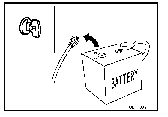 - Before removing parts, turn off ignition switch and then disconnect battery ground cable.