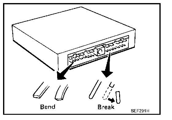 - When connecting or disconnecting pin connectors into or from ECM, take care not to damage pin terminals (bend or break).
