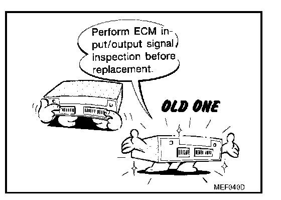 - Before replacing ECM, perform Terminals and Reference Value inspection and make sure ECM functions properly. Refer to ECM Terminals and Reference Value.
