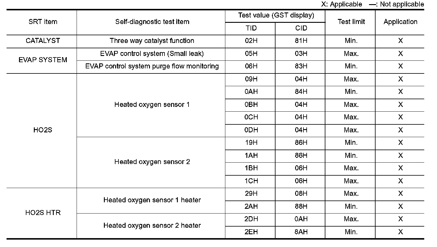 TEST VALUE AND TEST LIMIT (GST ONLY NOT APPLICABLE TO CONSULT-II)