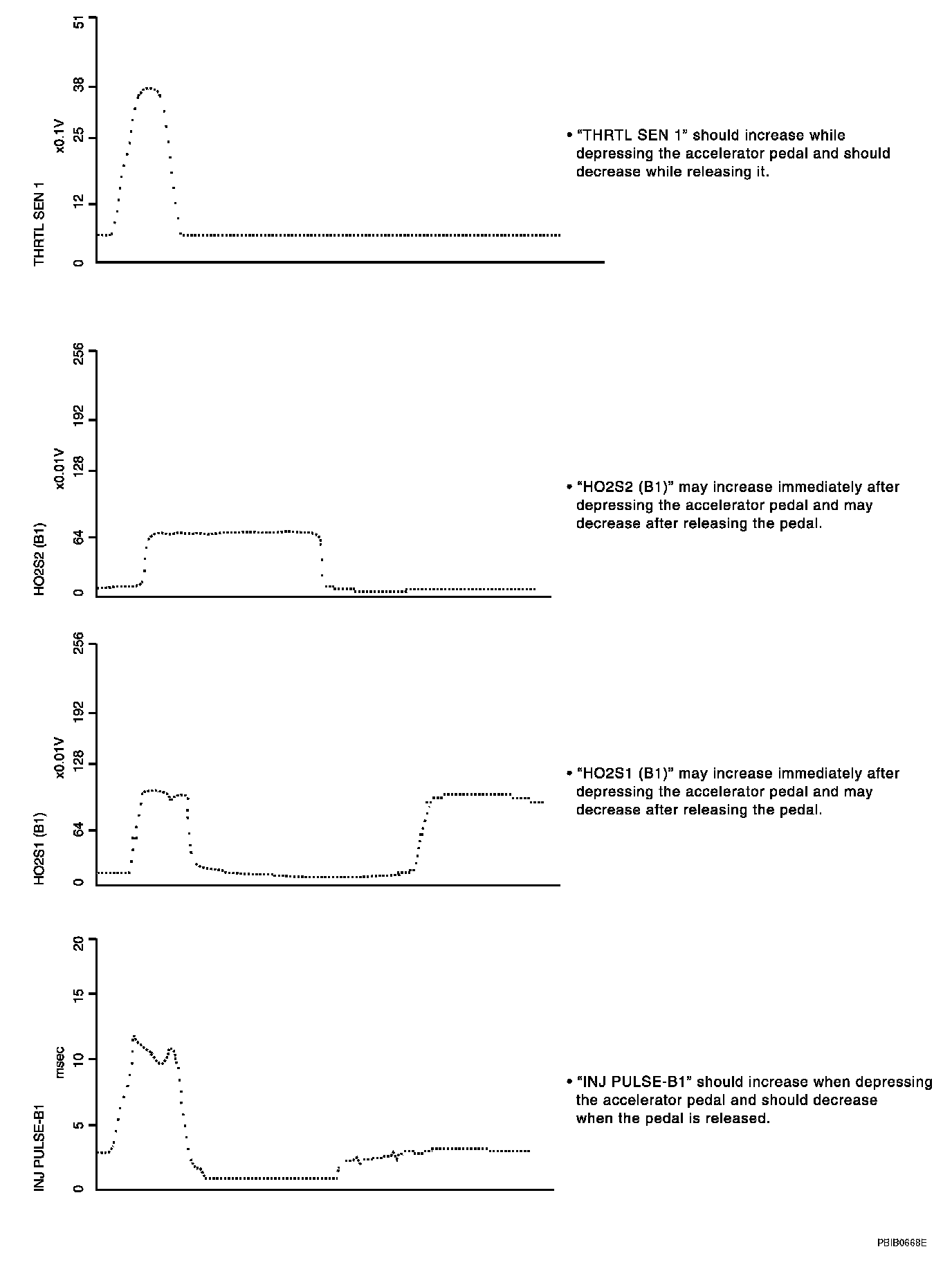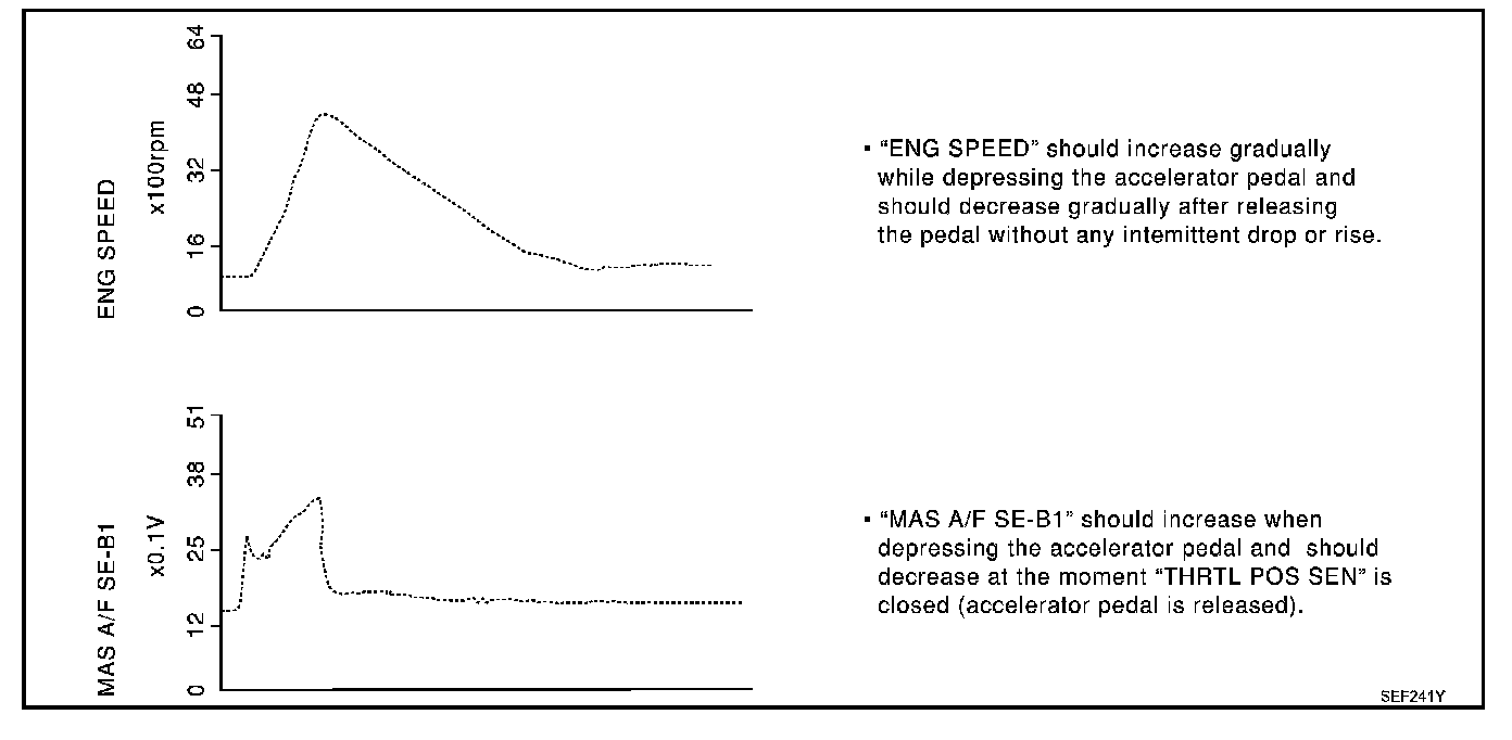The following are the major sensor reference graphs in "DATA MONITOR" mode.CLSD THL POS, ACCEL SEN1, THRTL SEN1