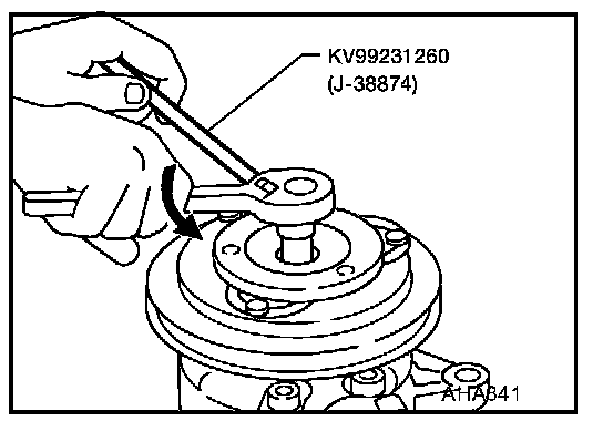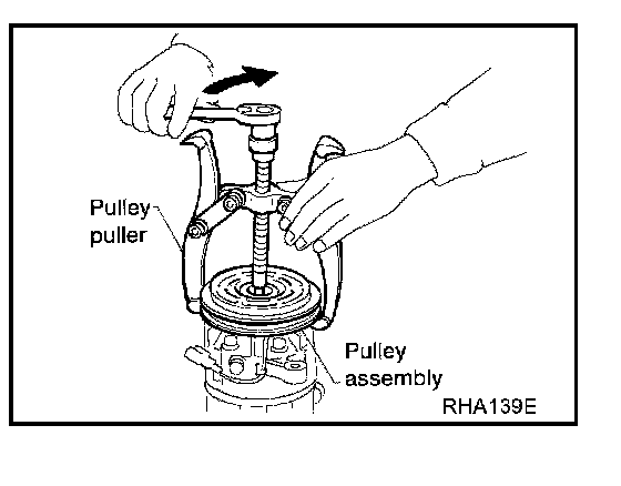 To prevent deformation of the pulley groove, the puller claws should be hooked under (not into) the pulley groove.