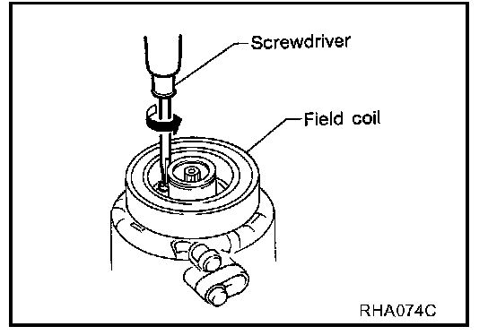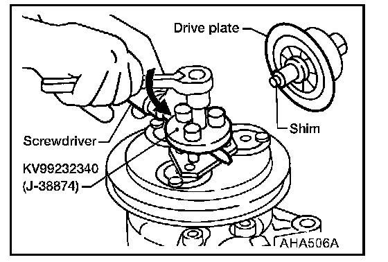 When replacing compressor clutch assembly, always conduct the break-in operation. This is done by engaging and disengaging the clutch about 30 times. Break-in operation raises the level of transmitted torque.