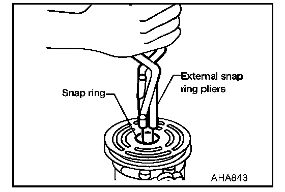 Install the pulley assembly using the installer and a hand press, and then install the snap ring using snap ring pliers.