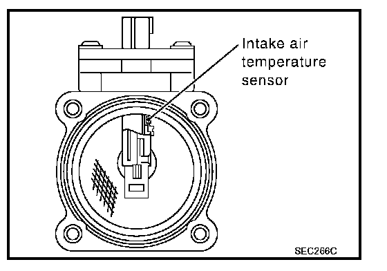 The mass air flow sensor is placed in the stream of intake air. It measures the intake flow rate by measuring a part of the entire intake flow. It consists of a hot film that is supplied with electric current from the ECM. The temperature of the hot film is controlled by the ECM a certain amount. The heat generated by the hot film is reduced as the intake air flows around it. The more air, the greater the heat loss.