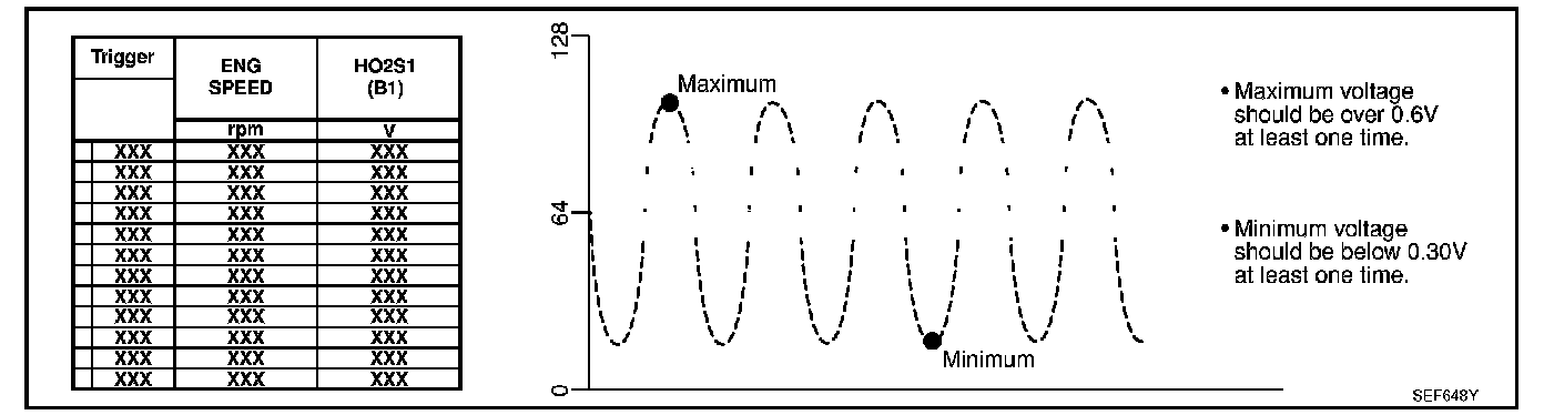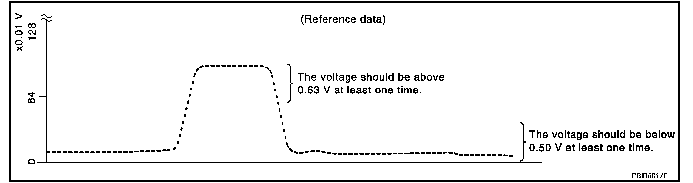 (Depress and release accelerator pedal as soon as possible.) The voltage should be above 0.63 V at least once during this procedure.