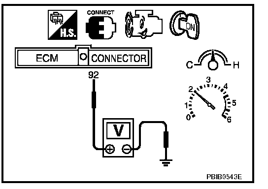 2. Set voltmeter probes between ECM terminal 92 [HO2S1 (B1) signal] and engine ground.