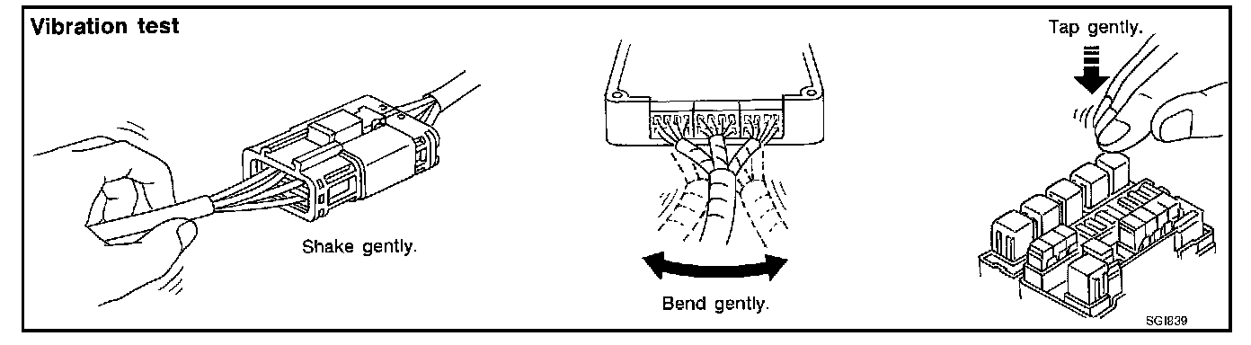 Determine which connectors and wiring harness would affect the electrical system you are inspecting. Gently shake each connector and harness while monitoring the system for the incident you are trying to duplicate.