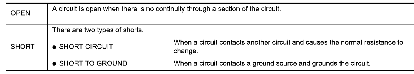 The continuity check is used to find an open in the circuit. The digital multimeter (DMM) set on the resistance function will indicate an open circuit as over limit (no beep tone or no ohms symbol). Make sure to always start with the DMM at the highest resistance level.