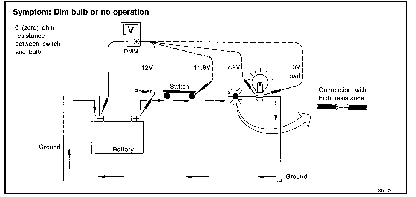 Electronically controlled circuits are very sensitive to proper grounding. A loose or corroded ground can drastically affect an electronically controlled circuit. A poor or corroded ground can easily affect the circuit. Even when the ground connection looks clean, there can be a thin film of rust on the surface.