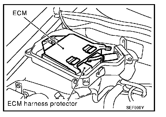1. ECM is located in the right side of the cowl top (behind the strut tower).