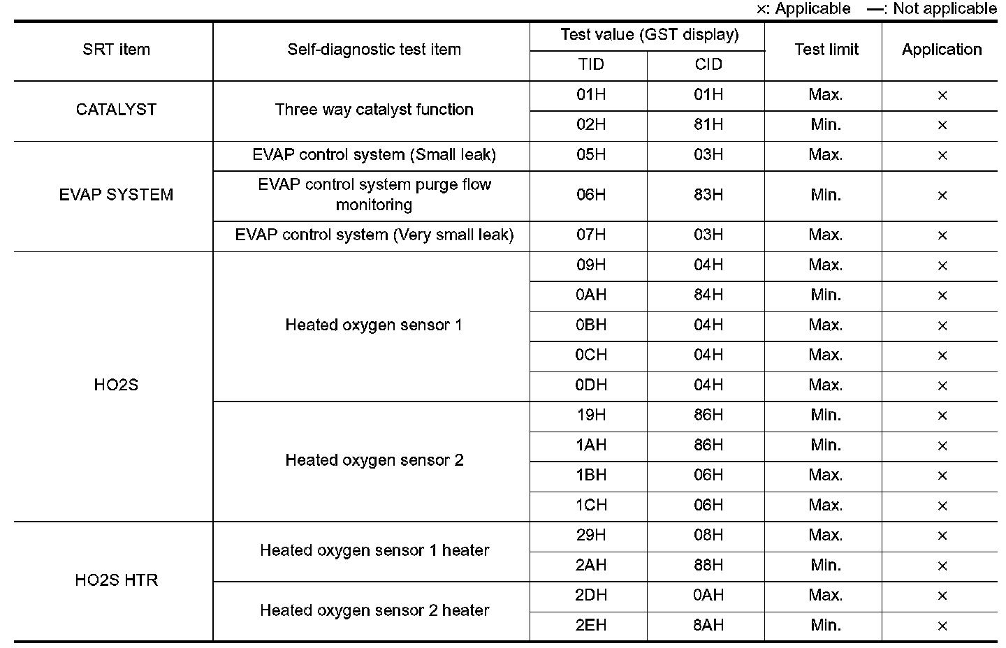 The test value is a parameter used to determine whether a system/circuit diagnostic test is "OK" or "NG" while being monitored by the ECM during self-diagnosis. The test limit is a reference value which is specified as the maximum or minimum value and is compared with the test value being monitored.