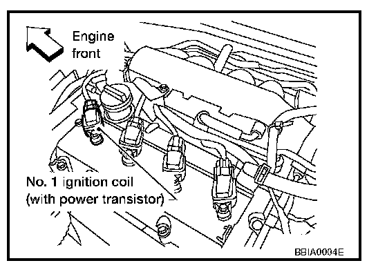 2. Connect No. 1 ignition coil and No. 1 spark plug with suitable high-tension wire as shown, and attach timing light clamp to this wire.