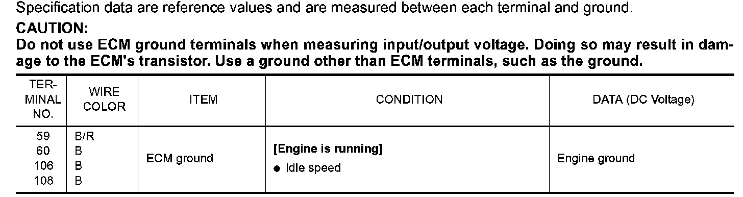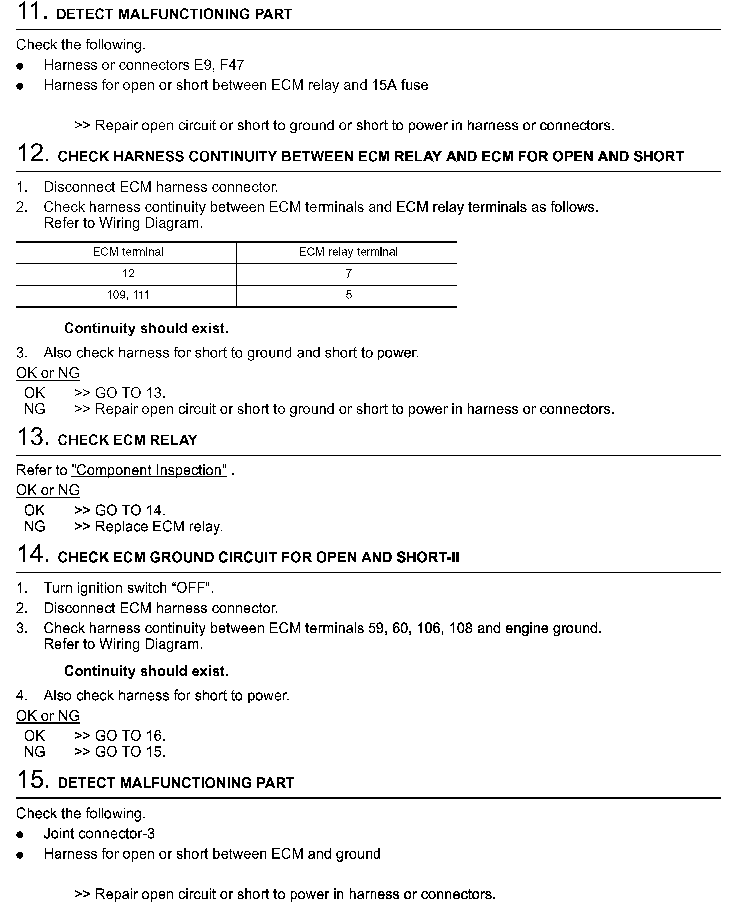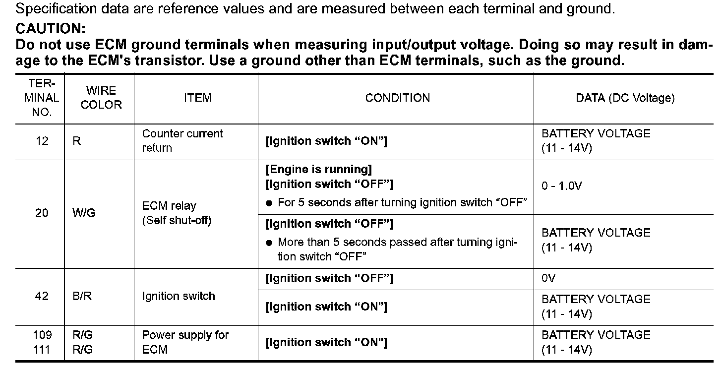 1. Apply 12 V direct current between ECM relay terminals 1 and 2.