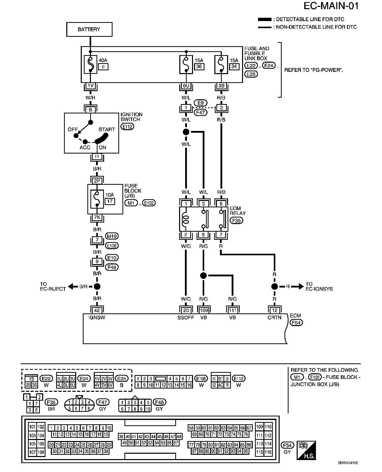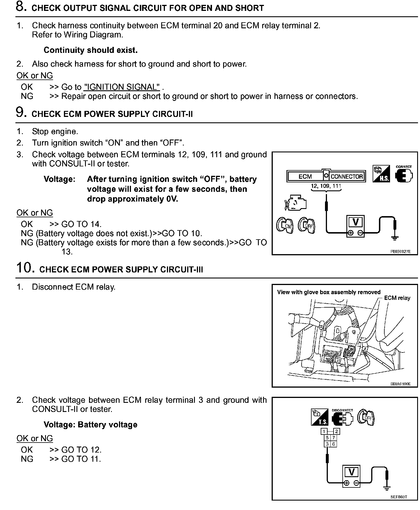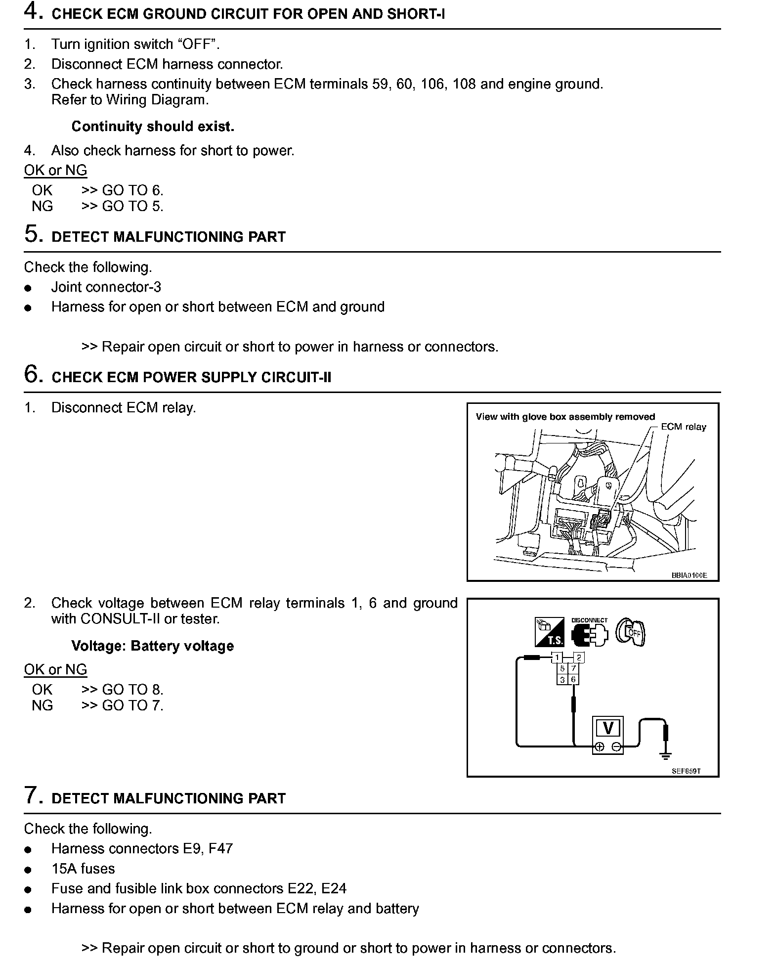 1. Apply 12 V direct current between ECM relay terminals 1 and 2.