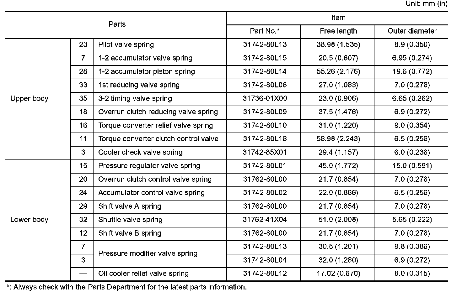 CONTROL VALVE AND PLUG RETURN SPRINGS