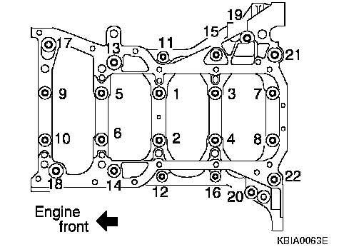 Tighten lower cylinder block mounting bolts in the numerical order shown and according to the following steps: