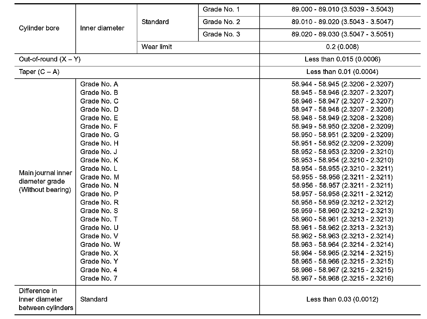 Cylinder block heater: ...................69 - 78 Nm (7.0 - 8.0 kg-m, 51 - 57 ft. lbs.)