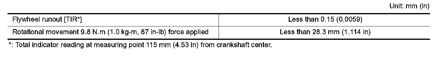 Crankshaft position sensor bolt: .........................5.4 - 7.3 Nm (0.55 - 0.75 kg-m, 48 - 65 inch lbs.)