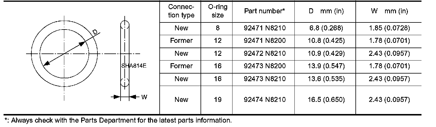 O-Ring Part Numbers And Specifications: