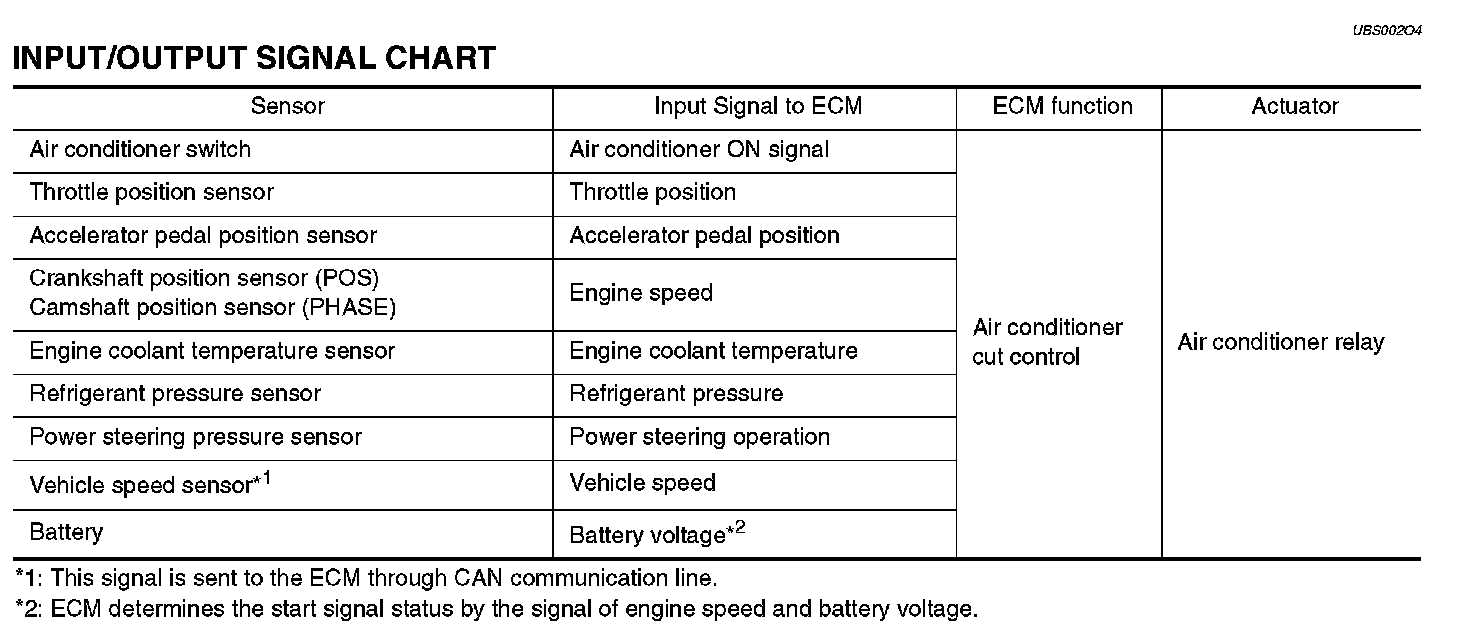 Air Conditioning Cut ControlInput/Output Signal Chart: