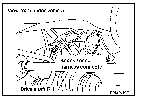 The knock sensor is attached to the cylinder block. It senses engine knocking using a piezoelectric element. A knocking vibration from the cylinder block is sensed as vibrational pressure. This pressure is converted into a voltage signal and sent to the ECM.