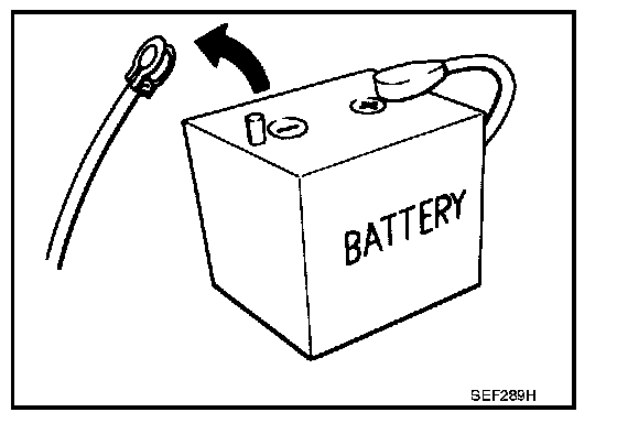 - Before removing parts, turn ignition switch OFF and then disconnect battery ground cable.