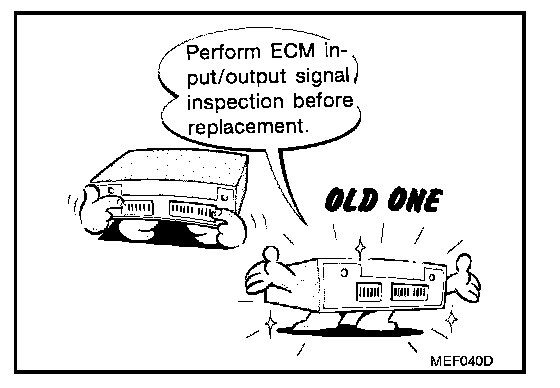 - Before replacing ECM, perform "ECM Terminals and Reference Value" inspection and make sure ECM functions properly.