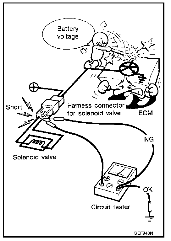 - Do not use ECM ground terminals when measuring input/output voltage. Doing so may result in damage to the ECM's transistor. Use a ground other than ECM terminals, such as the ground.