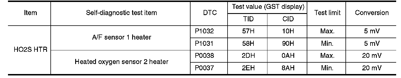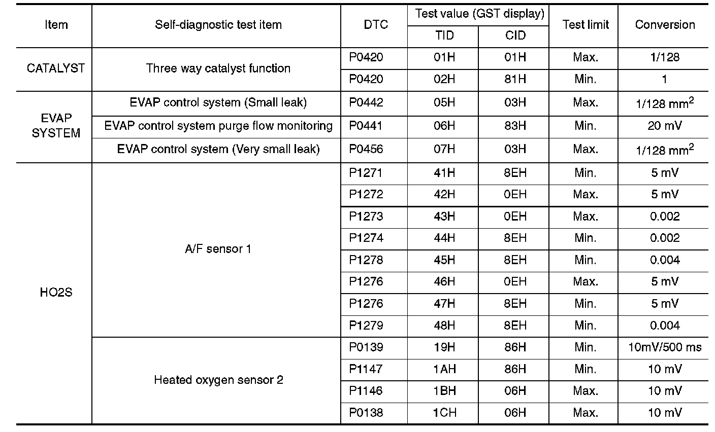 The test value is a parameter used to determine whether a system/circuit diagnostic test is "OK" or "NG" while being monitored by the ECM during self-diagnosis. The test limit is a reference value which is specified as the maximum or minimum value and is compared with the test value being monitored.