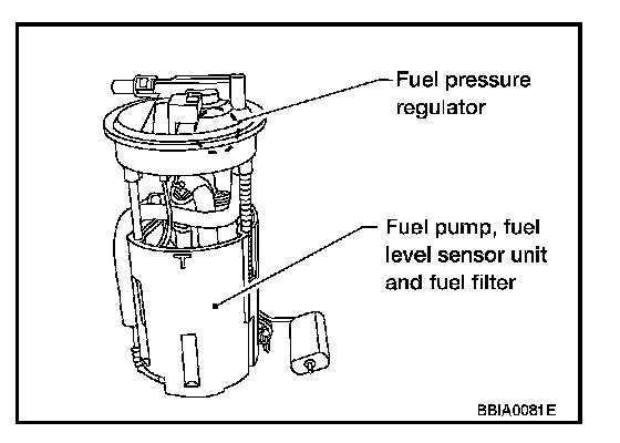 The fuel level sensor is mounted in the fuel level sensor unit. The sensor detects a fuel level in the fuel tank and transmits a signal to the ECM.