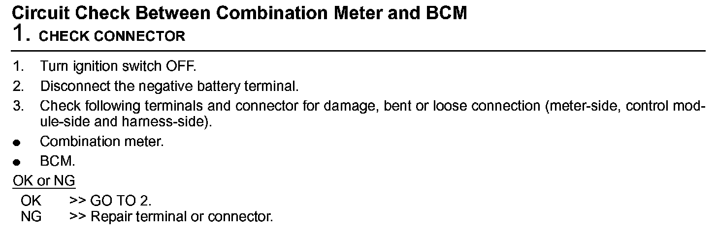Circuit Check Between Combination Meter And BCM (Step 1):