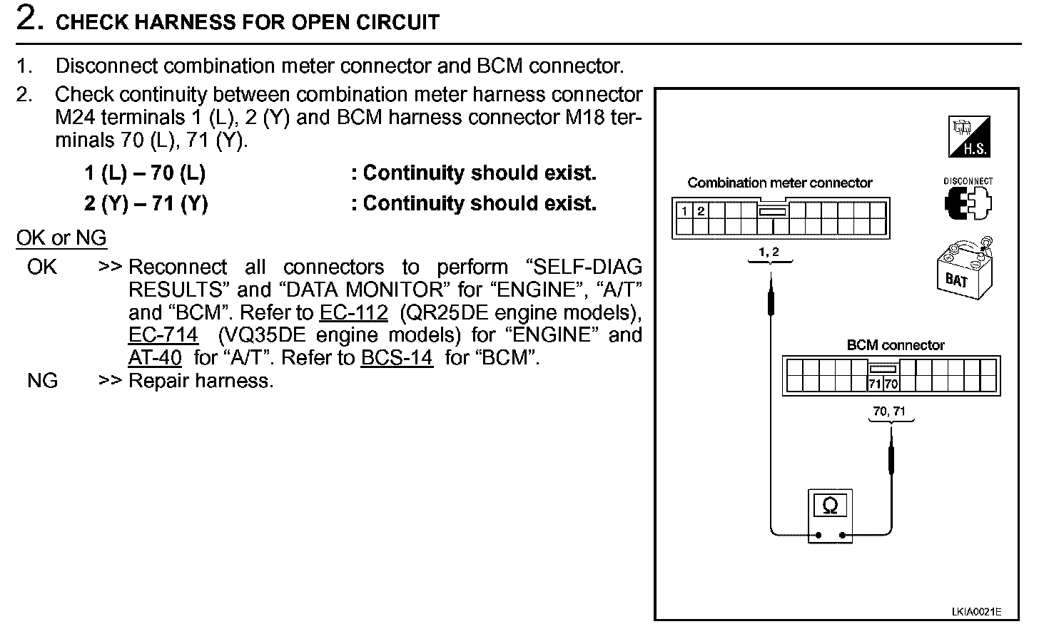 Circuit Check Between Combination Meter And BCM (Step 2):