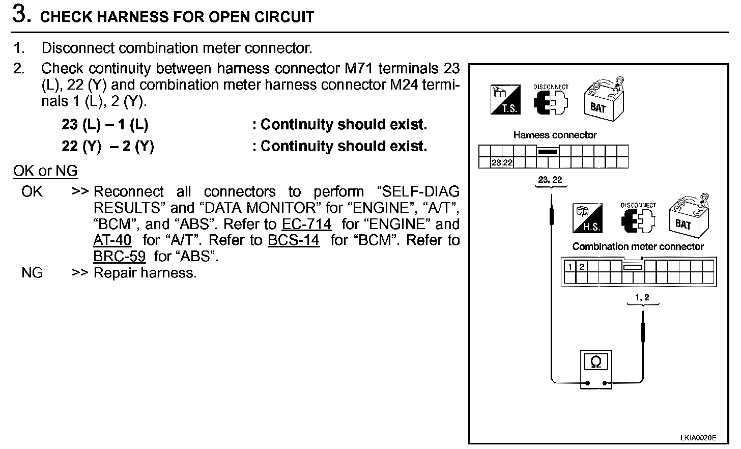 Circuit Check Between TCM And Combination Meter (Step 3):