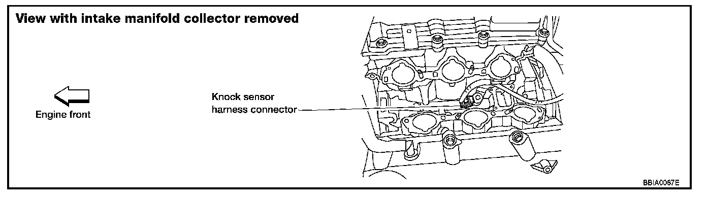 The knock sensor is attached to the cylinder block. It senses engine knocking using a piezoelectric element. A knocking vibration from the cylinder block is sensed as vibrational pressure. This pressure is converted into a voltage signal and sent to the ECM.