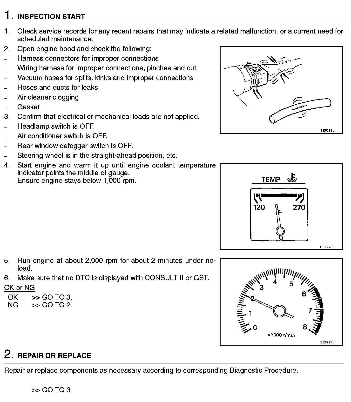 2. On air conditioner equipped models, checks should be carried out while the air conditioner is OFF.