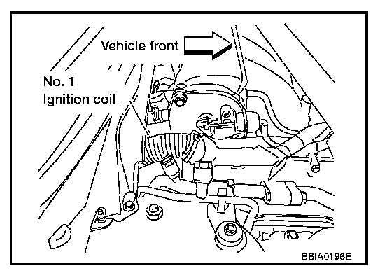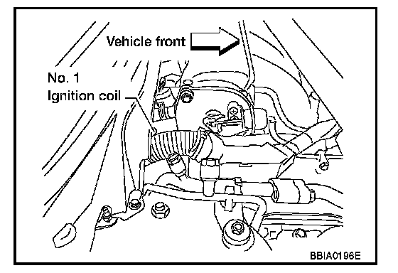 - Connect No. 1 ignition coil and No. 1 spark plug with suitable high-tension wire as shown, and attach timing light clamp to this wire.