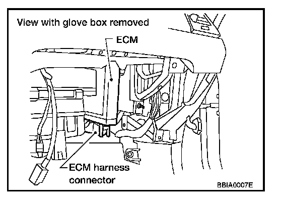 1. ECM is located behind the glove box. For this inspection, remove glove box.