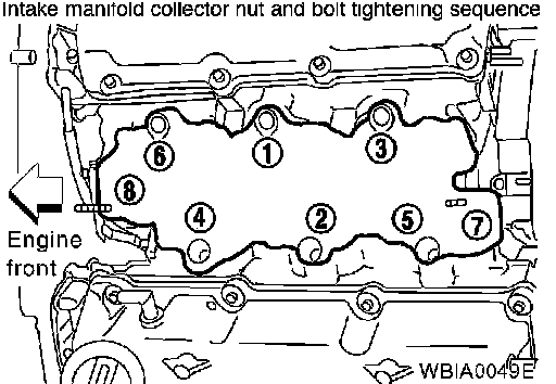 Intake manifold collector bolts: 18 - 21 Nm (1.8 - 2.2 kg-m, 13 -15 ft. lbs.)
