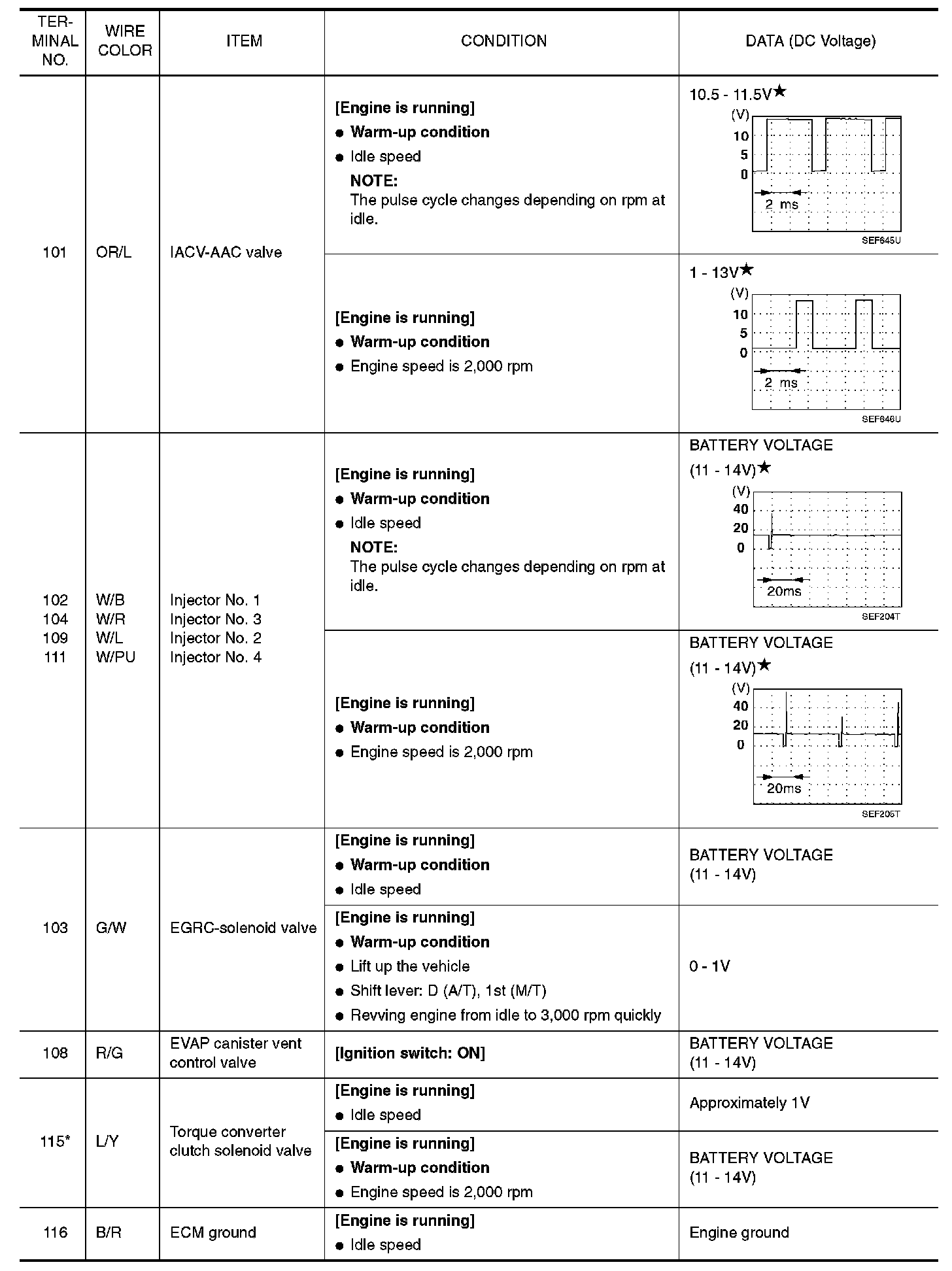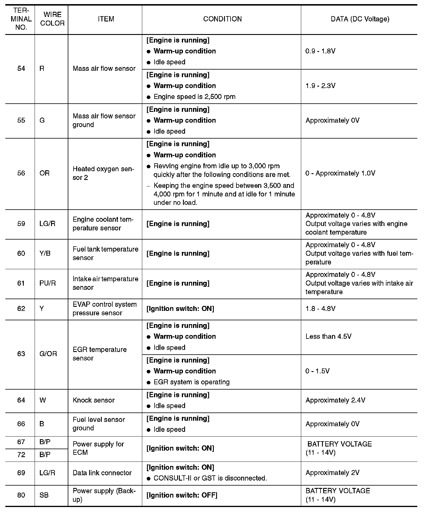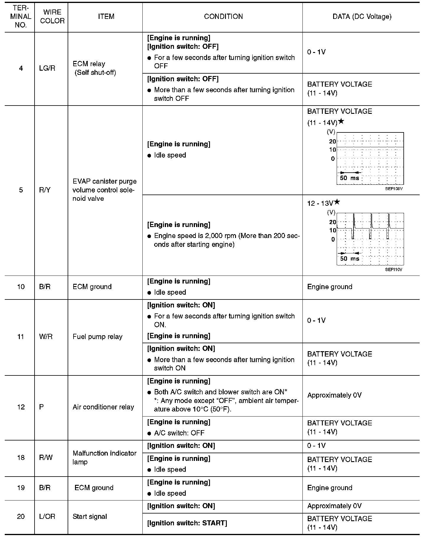 ECM Harness Connector Terminal Layout: