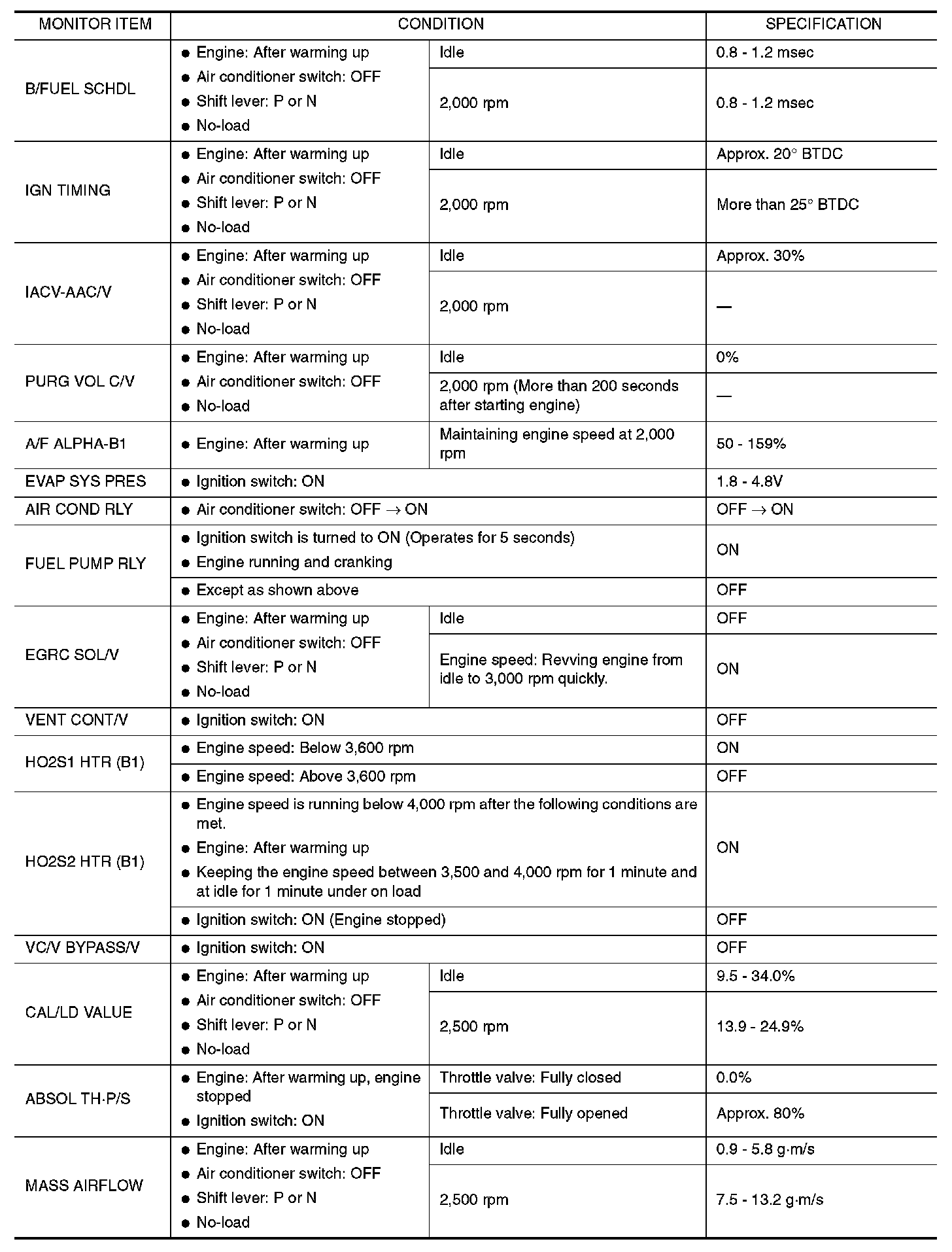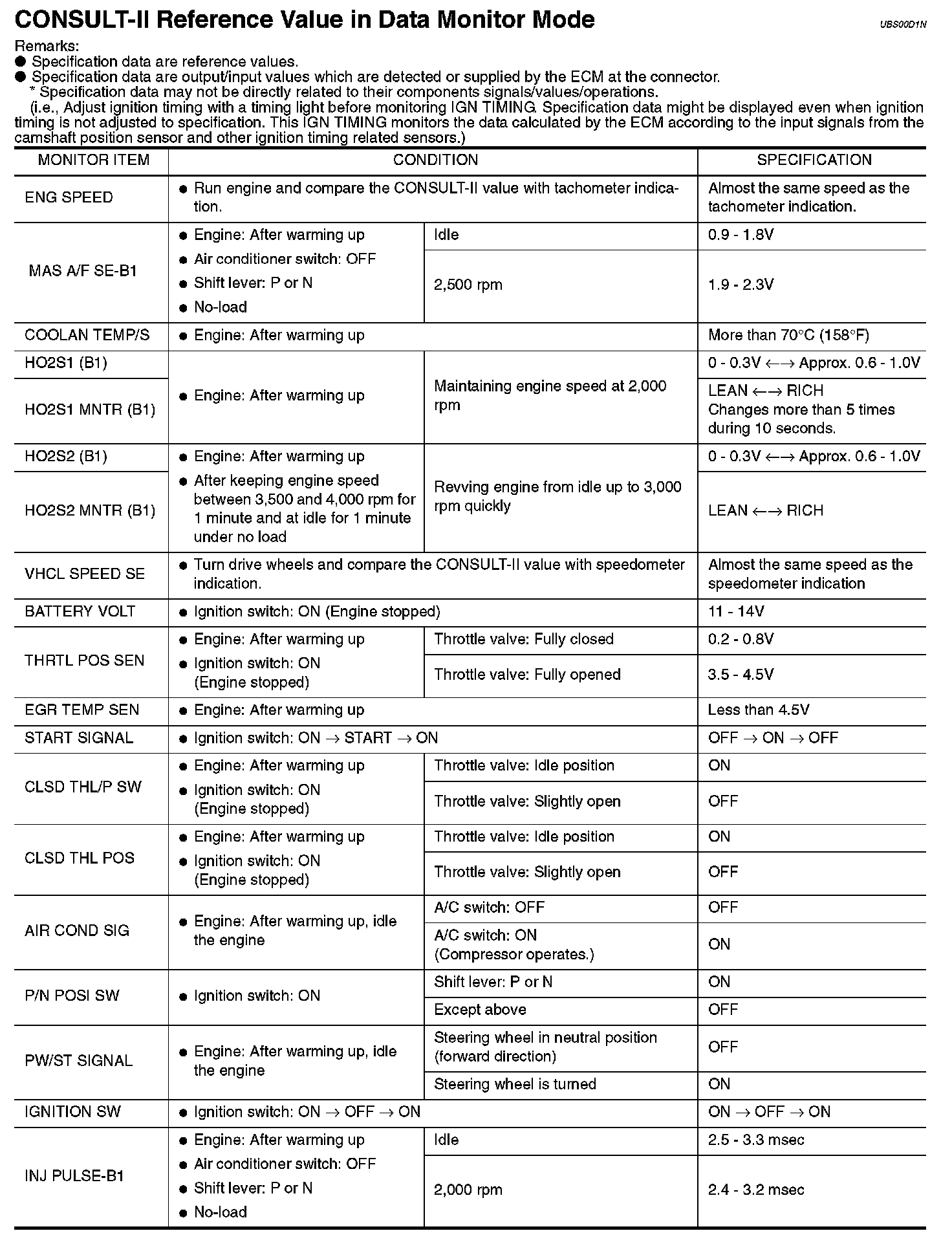 CONSULT-II Reference Value in Data Monitor Mode Part 1: