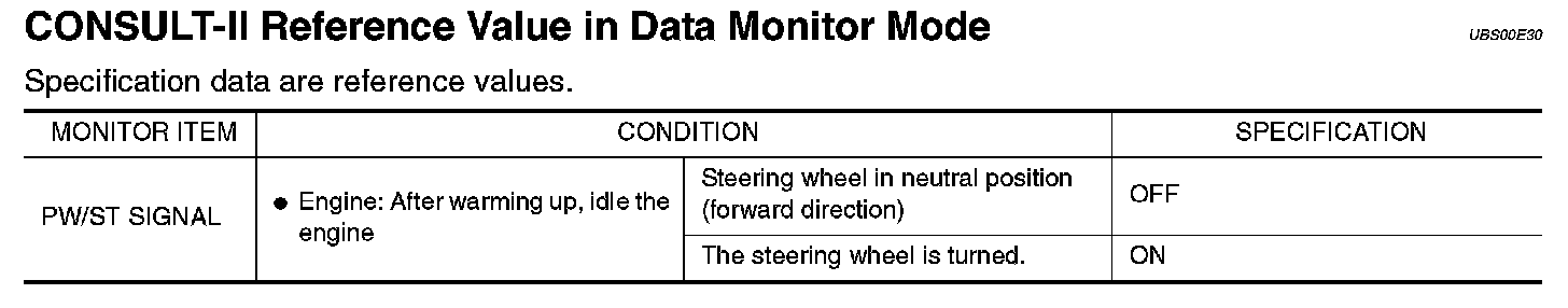 CONSULT-II Reference Value In Data Monitor Mode: