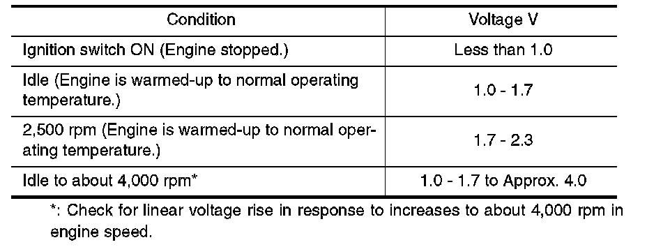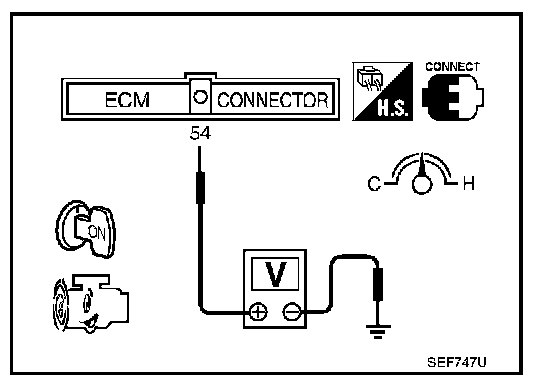 3. Check voltage between ECM terminal 54 (Mass air flow sensor signal) and ground.