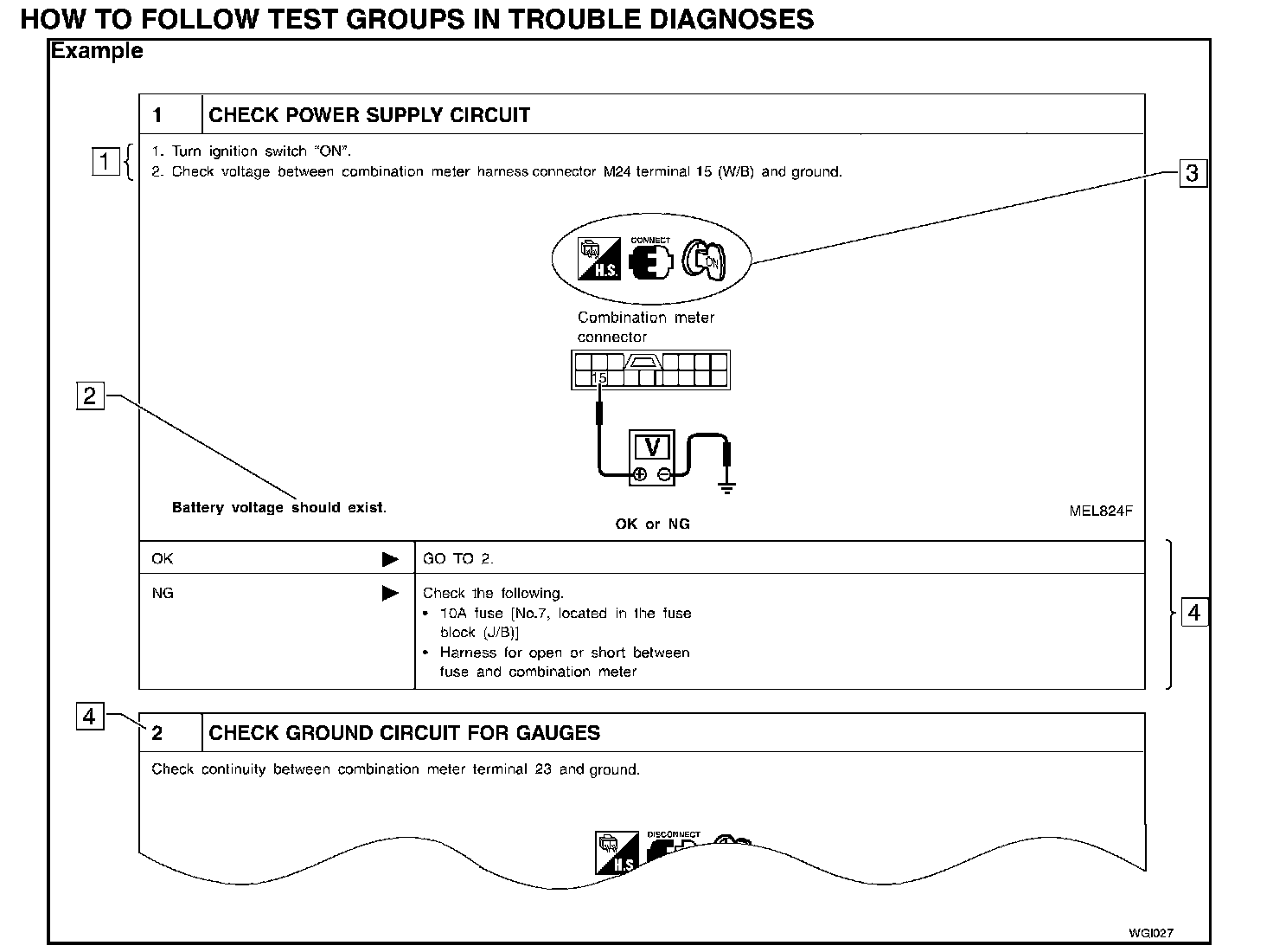 If you need to check circuit continuity between harness connectors in more detail, such as when a sub-harness is used, refer to Wiring Diagram in each individual section and Harness Layout in Diagram Information and Instructions for identification of harness connectors.