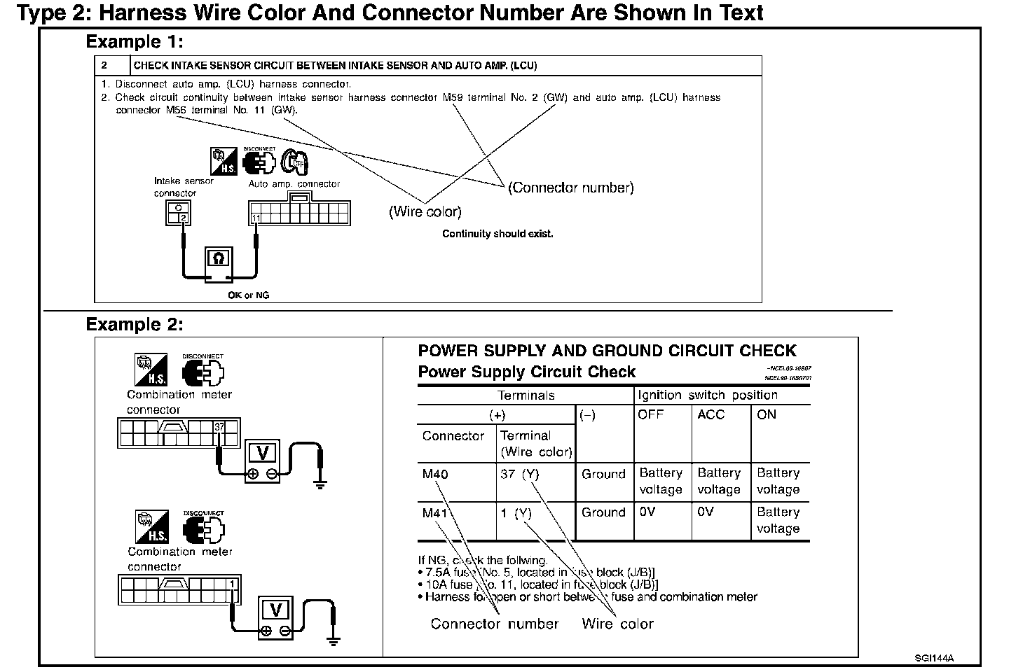 Type 2: Harness Wire Color And Connector Number Are Shown In Text