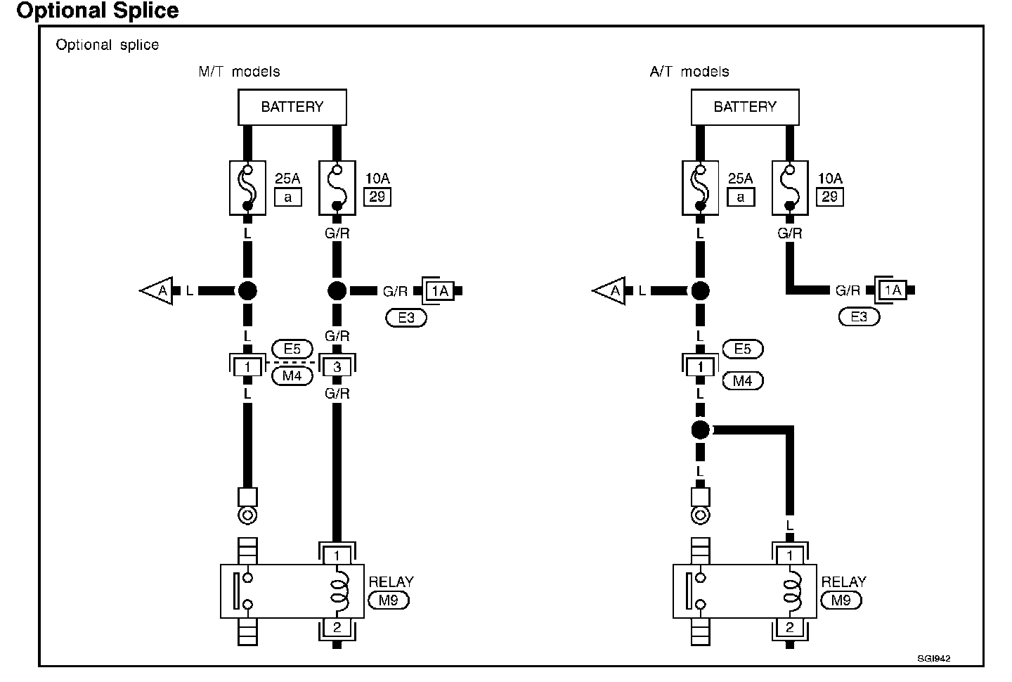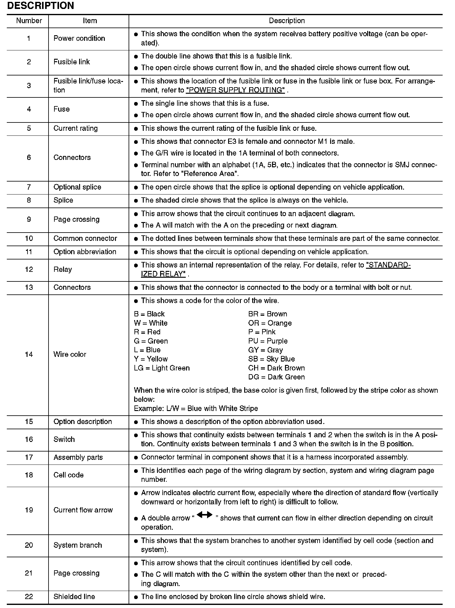 For connector terminal and fuse arrangement, refer to the "FUSE BLOCK-Junction Box (J/B)" electrical reference.